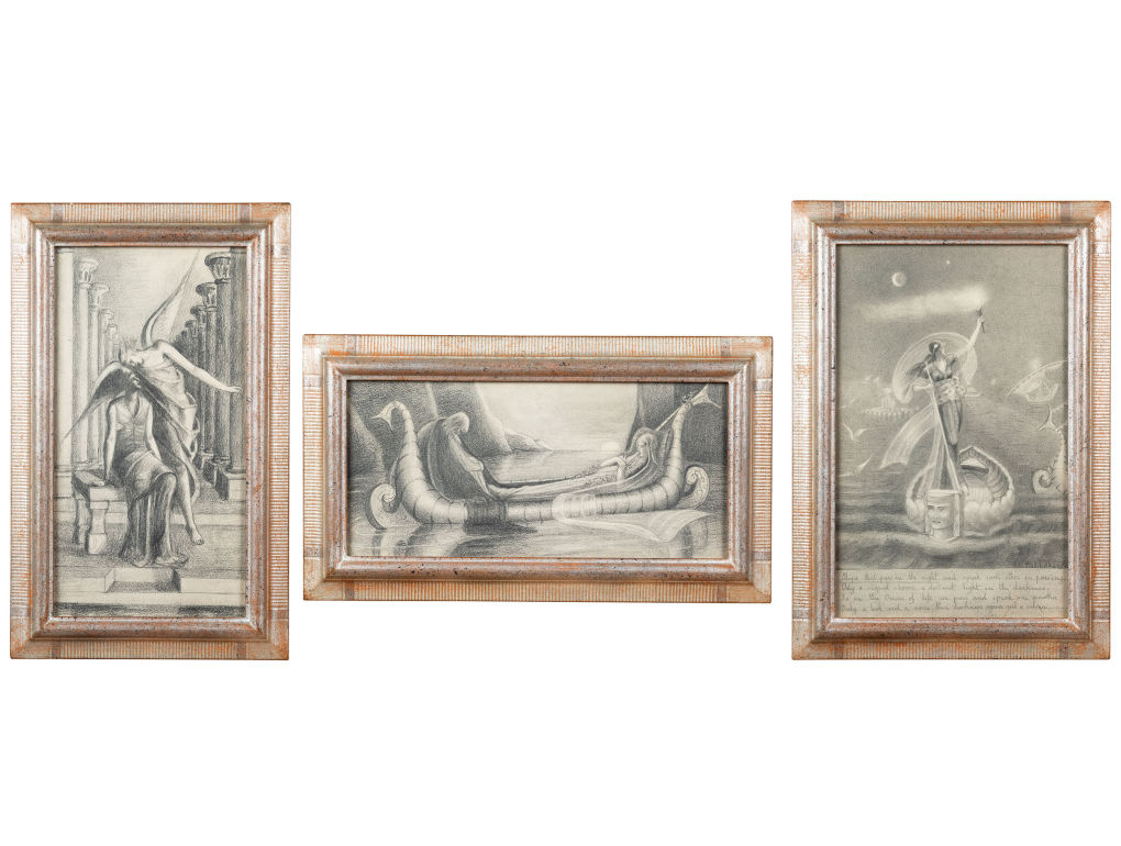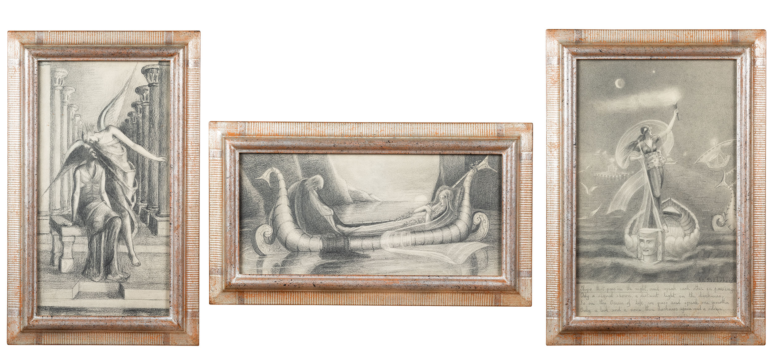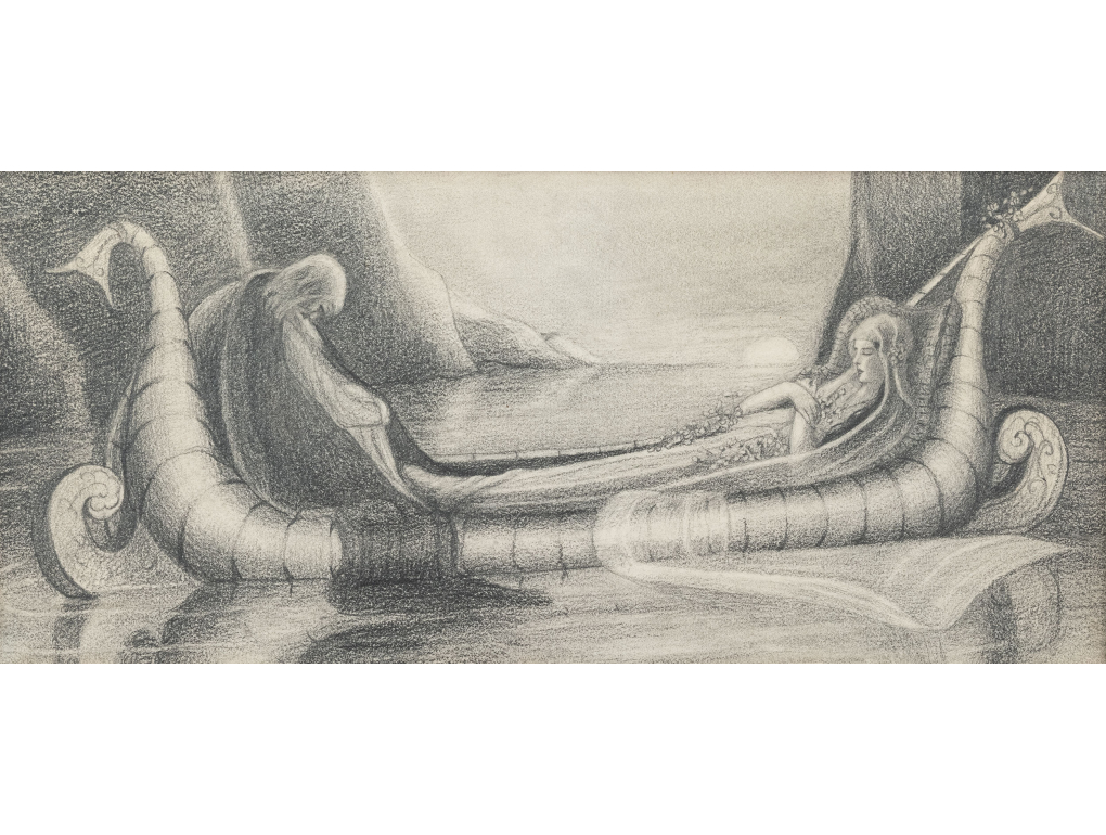 This group of three drawings forms a Symbolist triptych with a coherent iconography. The composition presents idealised female figures, set within nocturnal, aquatic, or architectural spaces, deliberately removed from any precise temporal reference.Read more