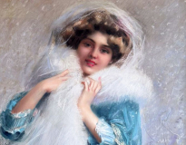 His models—young women reading, sewing, writing, or preparing themselves before a mirror—embody a gentle, contemplative femininity, free from any ostentation. In these works, Enjolras combines the realism inherited from Dagnan-Bouveret with a decorative elegance characteristic of the Belle Époque. His technique, often combining oil, watercolor, and pastel, enhances the delicacy of his chromatic harmonies and the diffuse sensuality of light.